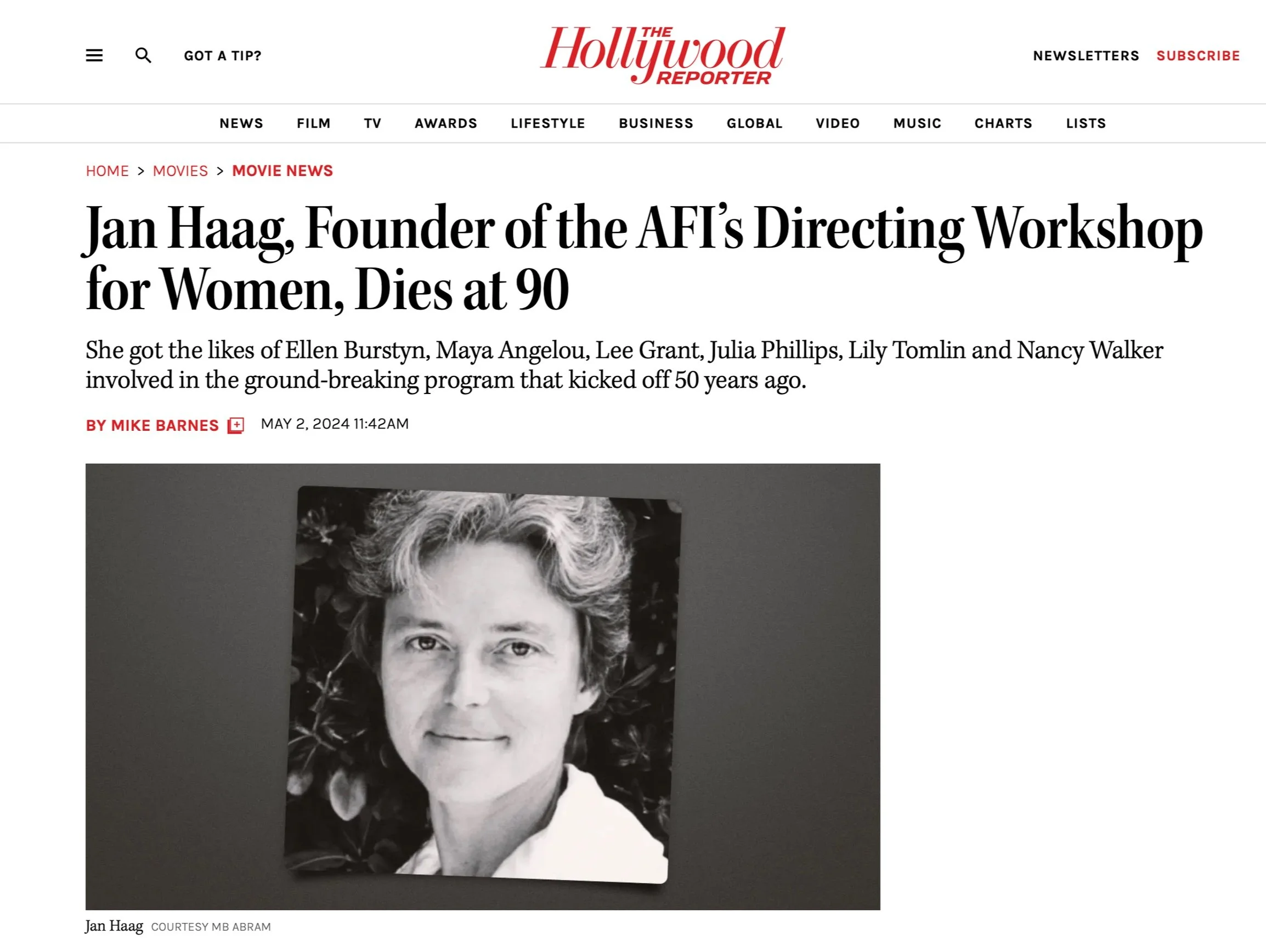 After directing dozens of educational films for the John Tracy Clinic and the U.S. Department of Health, Haag rose to prominence as the founder of the Directing Workshop for Women at the American Film Institute. Attracting the support of Maya Angelou, Anne Bancroft, Joan Didion, Mathilde Krim, Lily Tomlin, Joanne Woodward, and many others, she broke the glass ceiling for women directors in the film industry.