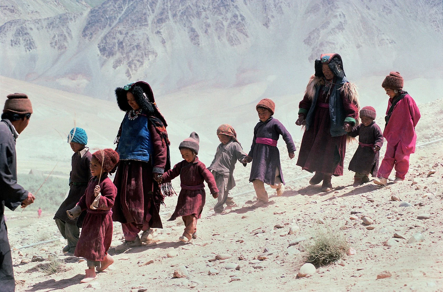 Zanskari mothers and children going to an encampment during the Dalai Lama’s visit, Zanskar, Ladakh, India, 1997
