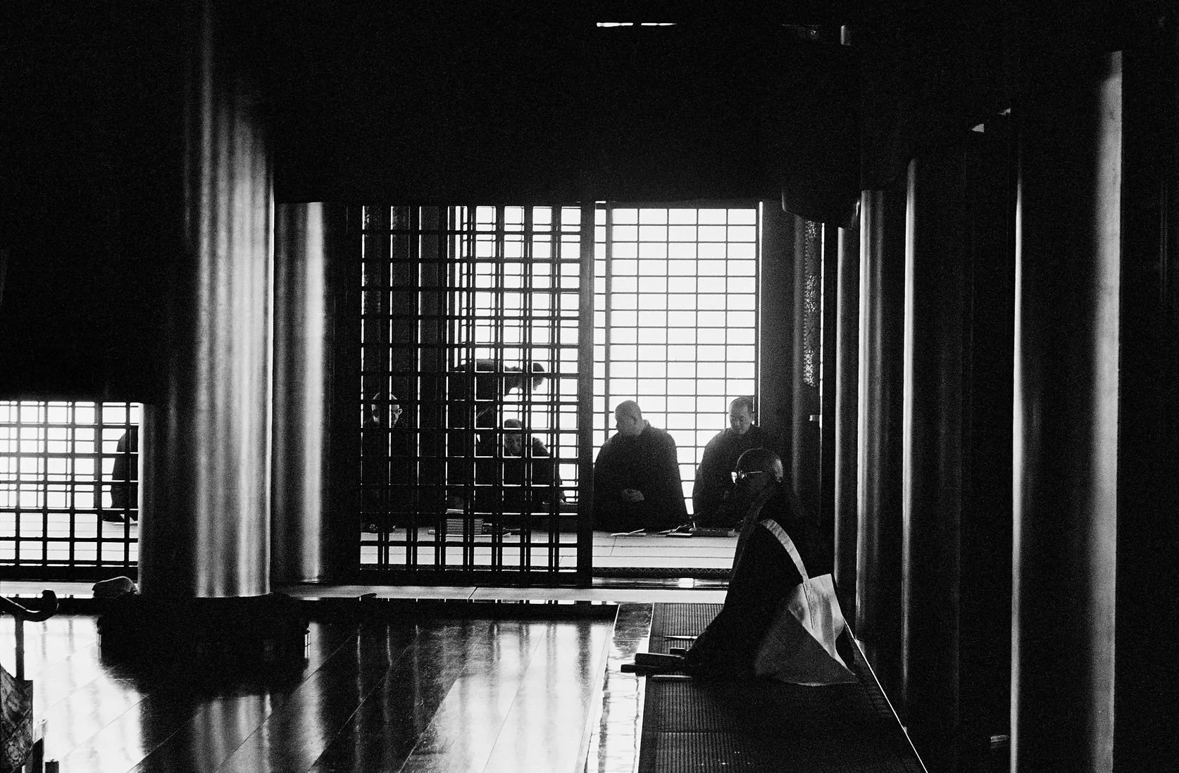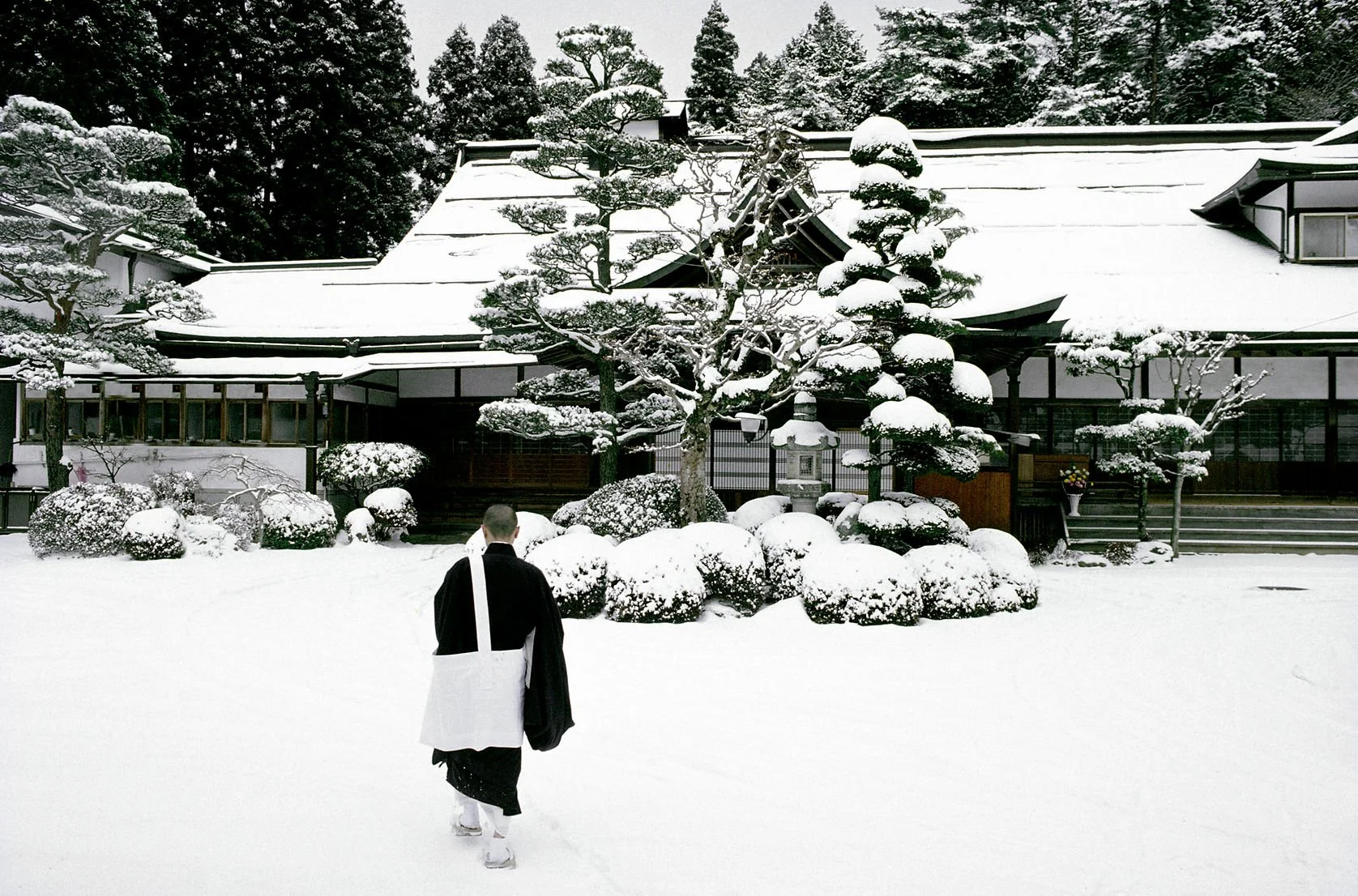 Monk and Snow, Takamoru-in Temple, Koyasan, Japan, 1989