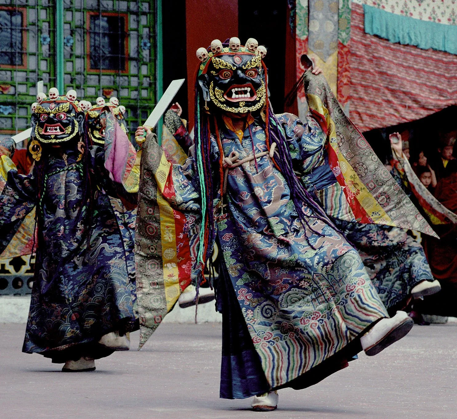 Sacred dance performed by monks, Rumtek Monastery, Sikkim, India, 1997