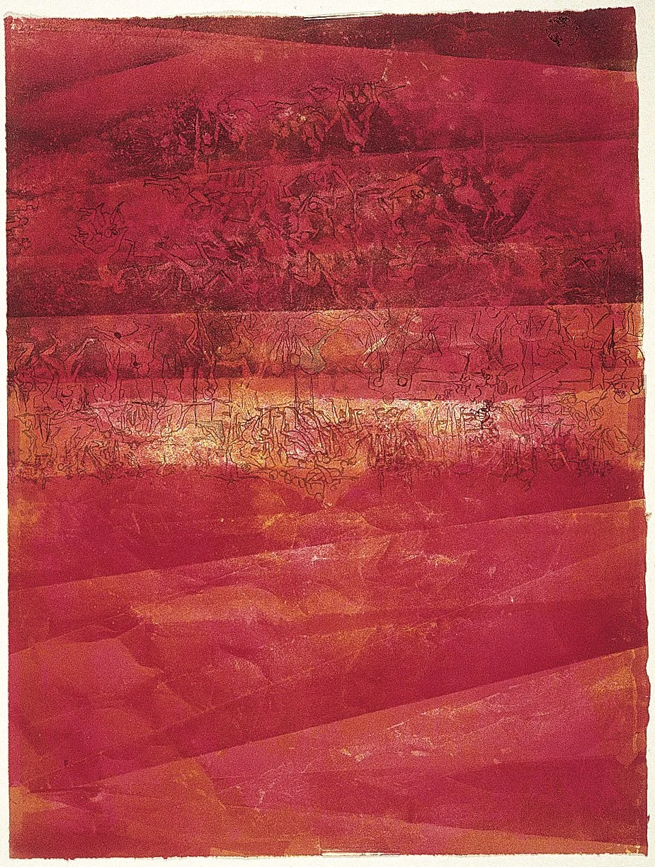 Color lithograph printed by Maurice Sanchez assisted by Pierre Lozingot, and published by Tamarind Lithography Workshop on J. Green Waterleaf and Hannemühle Etching.