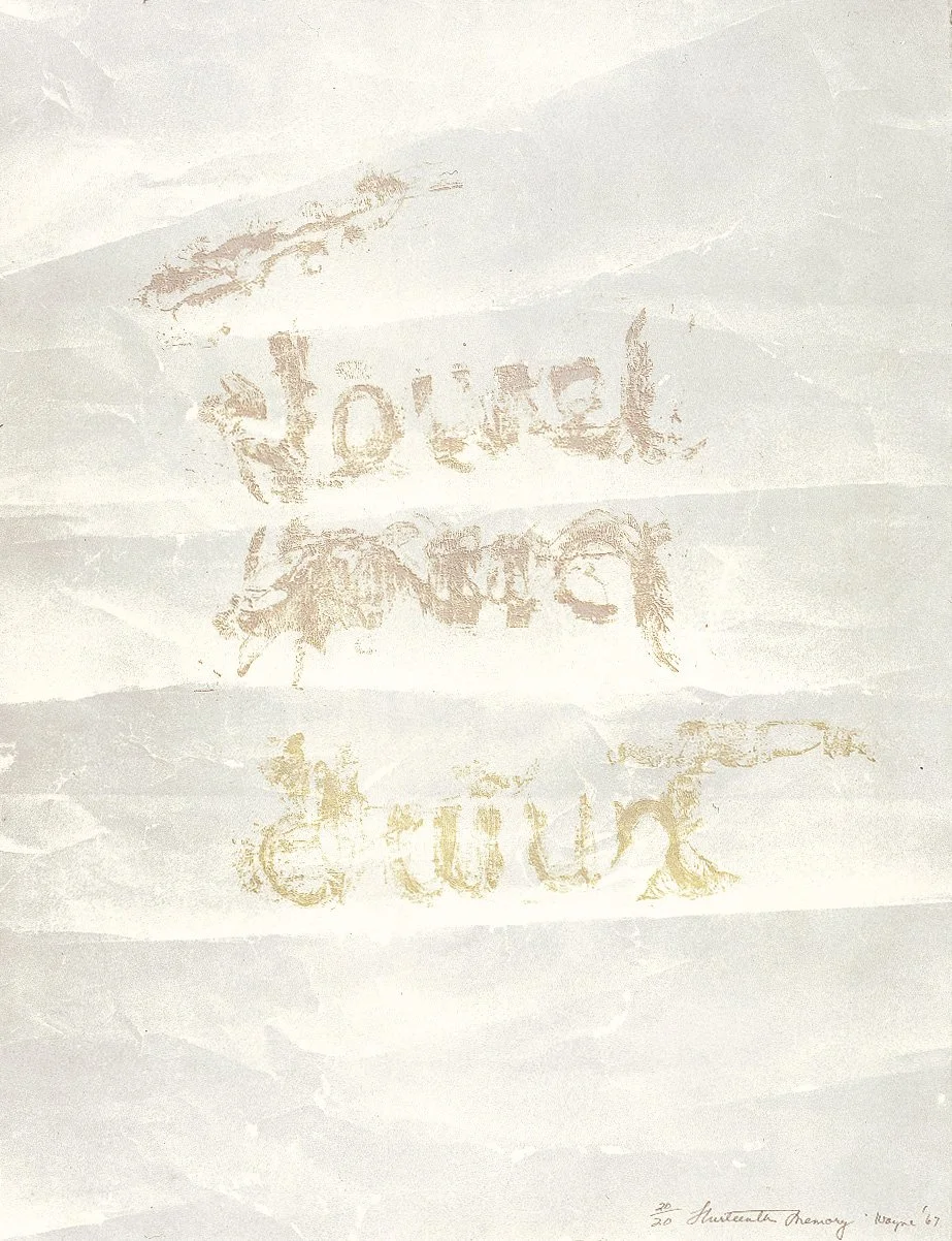 Color lithograph printed by Maurice Sanchez, and published by Tamarind Lithography Workshop on buff Arches cover.